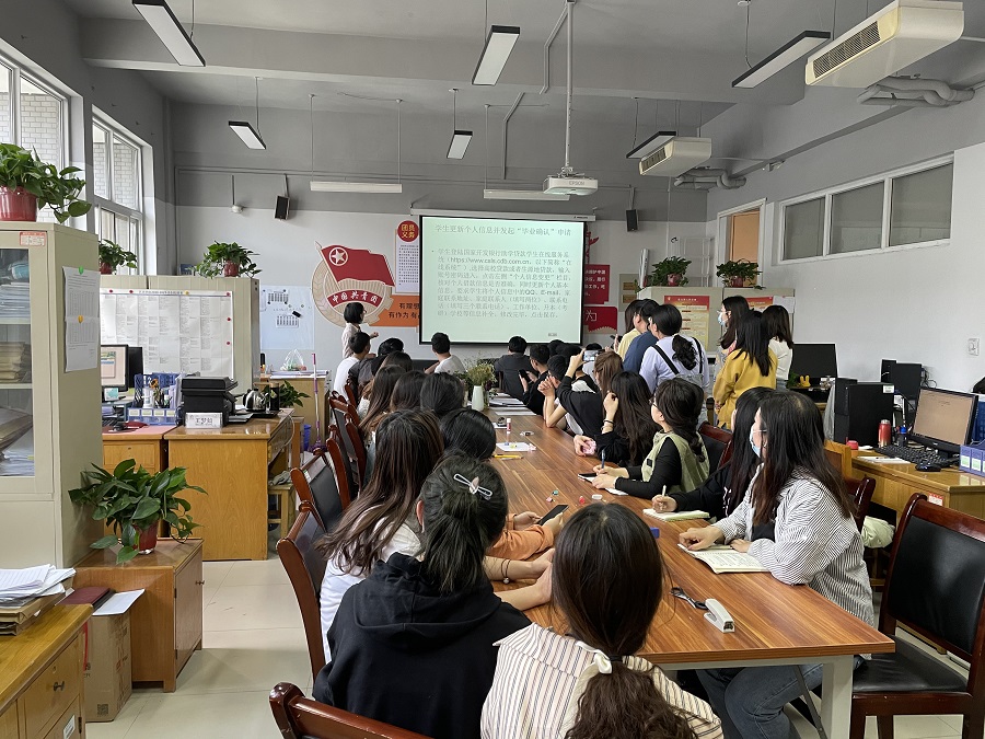 为进一步做好国家助学贷款的贷后管理工作,根据我校《关于做好2021届国家助学贷款毕业生毕业确认等有关事宜的通知》的要求,太阳成集团官方网站于2021年5月6日下午3点在合417召开了2021贷款毕业生毕业确认工作暨诚信教育座谈会,会议由太阳成官网资助专干孟星星老师主讲。