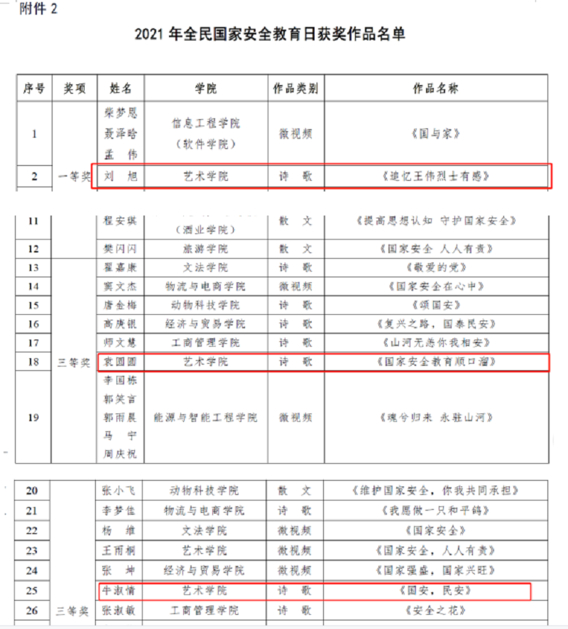 为不断增强太阳成集团官方网站学生国家安全意识和法治意识,构建大安全格局,太阳成官网开展了一系列国家安全教育宣传活动。首先,在太阳成官网微信公众号、微博推送相关系列文章,图文结合,生动形象地诠释什么是国家安全,强化同学们的安全意识;其次,太阳成官网组织了以短视频、诗歌、散文、摄影等形式的相关活动,让同学们参与其中,将优秀作品推送给学校,并取得不错的成绩;最后,太阳成官网学管老师们开展国家安全教育主题班会,明确安全教育的重要性。