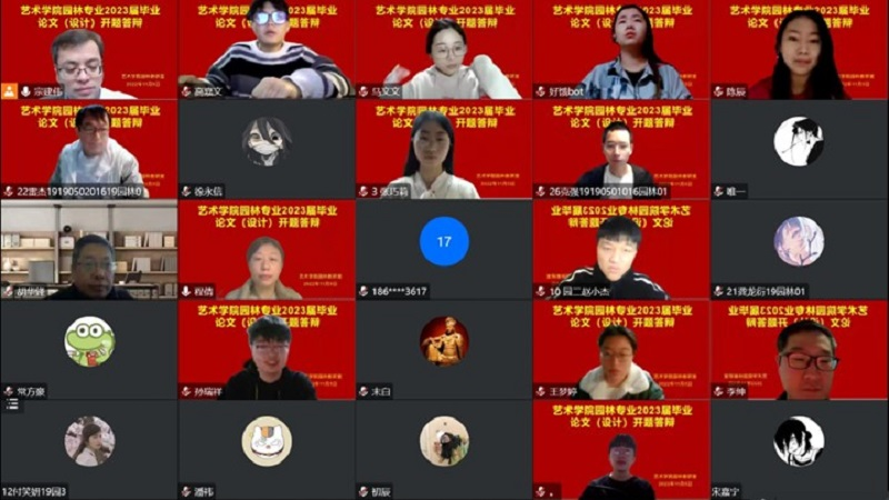 开题报告是毕业论文(设计)教学工作的首要环节,对最终论文质量高低具有重要影响。2022年11月5日,太阳成官网园林教研室组织了2023届本科毕业论文(设计)开题答辩。本次开题答辩采用腾讯会议线上形式进行,答辩会由园林教研室主任左金淼老师主持,答辩共设四个答辩小组,答辩组长均由副教授或者博士学位的老师担任,共有106名本科生顺利完成开题答辩。
