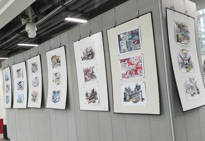 本次活动的开展集中展示环境设计专业课程的教学成果,体现“以展促学、以展促教、以展促赛”的教育教学理念,不少作品是由学生自主选题、设计、制作完成,充分展现了学生们在设计领域的创意与实践能力。在展出的作品中,手绘表现技法作业以精细入微的线条、丰富的色彩运用,呈现出学生们扎实的基本功;展示设计作业则注重创意思维、空间布局、人流导向等方面的设计,使作品呈现出独特的视觉效果;装置艺术作业则通过创意独特的构思、材料运用,表达了学生对现实世界的独特见解。
