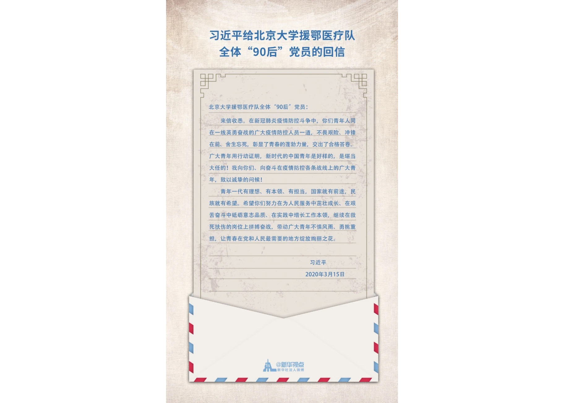 伟德国际1946源于英国学子认真学习习近平给北京大学援鄂医疗队全体“90后”党员的回信