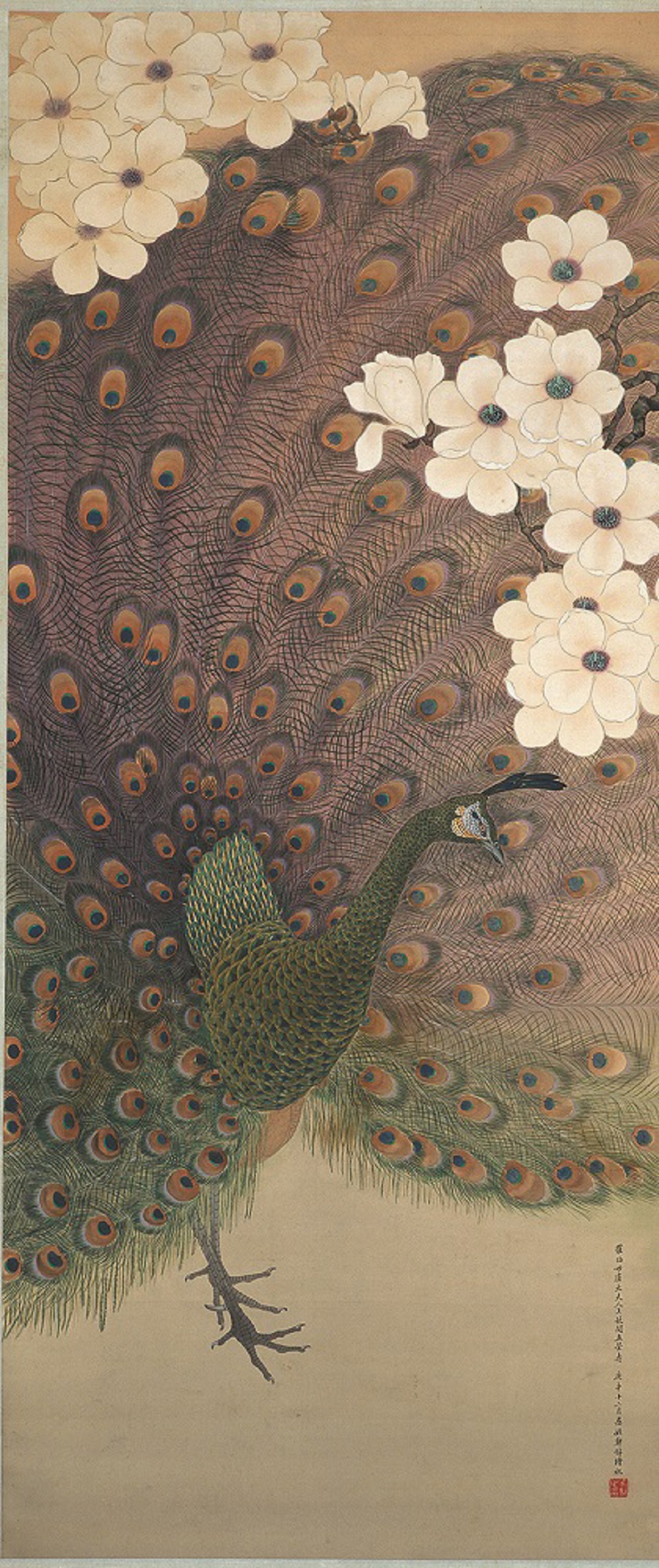 郑锦《玉兰孔雀》167x72cm 1920 绢本工笔设色 伟德国际1946源于英国美术馆