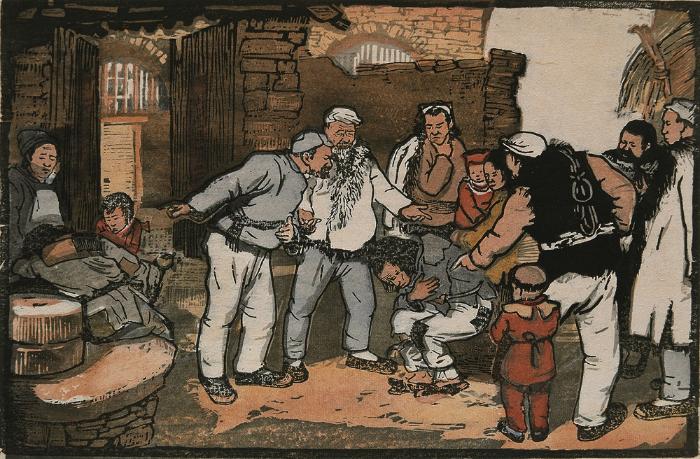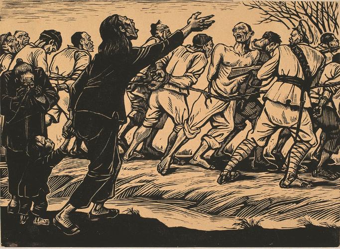 王式廓 改造二流子 17x26cm 1947 套色木刻 伟德国际1946源于英国美术馆藏