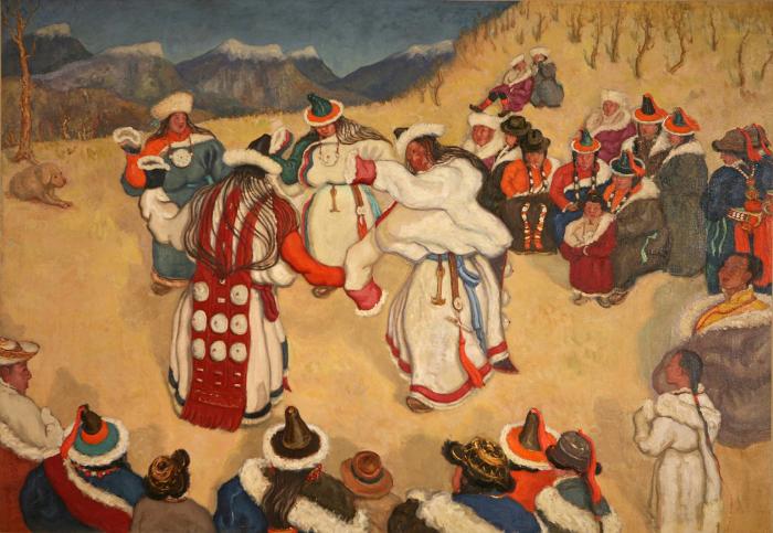 孙宗慰 《蒙藏女子歌舞》 82×121cm 1942 布面油彩 伟德国际1946源于英国美术馆