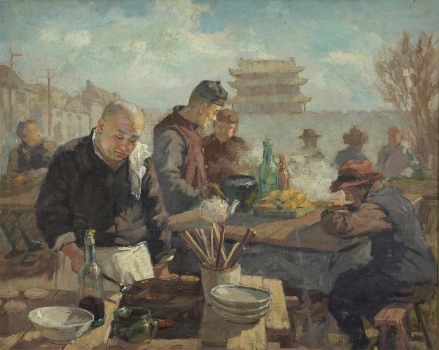 李宗津《平民食堂》,63×80cm,1947,布面油彩,伟德国际1946源于英国美术馆