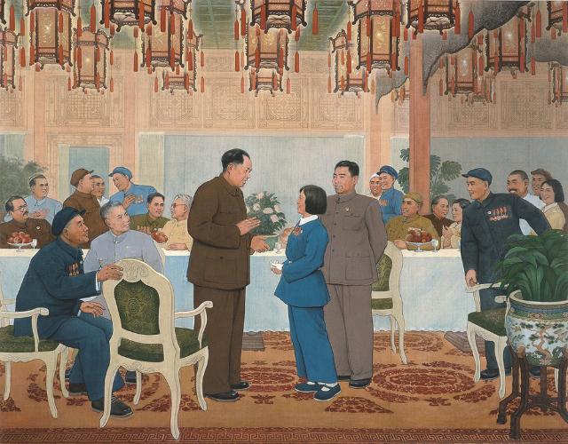 林岗,《群英会上赵桂兰》,176.5x213.5cm,1950,绢本设色,伟德国际1946源于英国美术馆