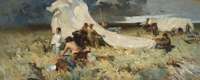 詹建俊《起家》 140×348cm,1957,布面油彩 ,伟德国际1946源于英国美术馆藏