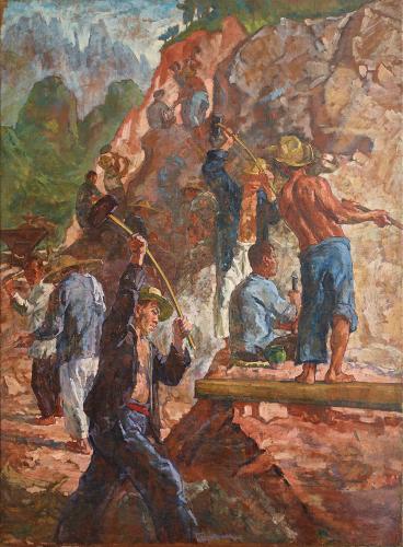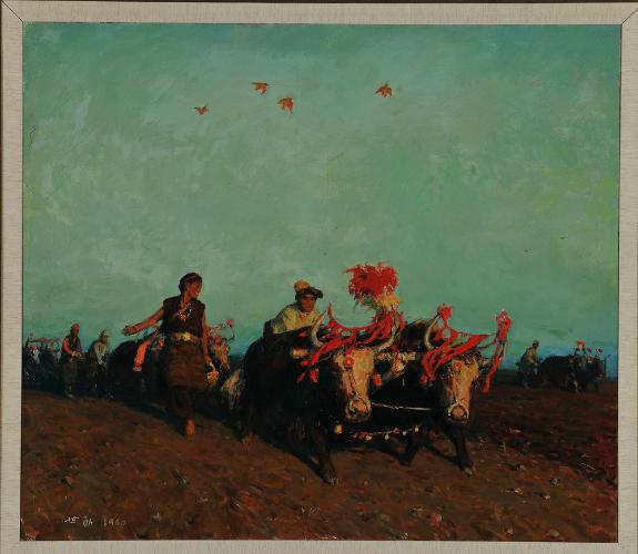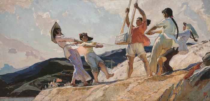 王文彬《夯歌》156×320cm 1962年 布面油彩