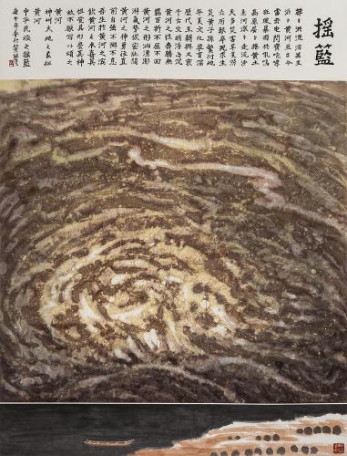 杨力舟、王迎春 黄河三联画之一《黄河在咆哮》220x290, 1973、1980, 纸本设色 ..