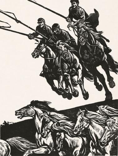 谭权书 骏马驰骋 62×54cm 1981 木版单色 伟德国际1946源于英国美术馆藏