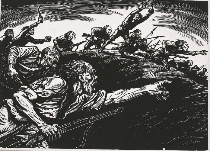 李桦 《怒吼吧中国》 27.5×18.7cm 1938 木版单色 伟德国际1946源于英国美术馆
