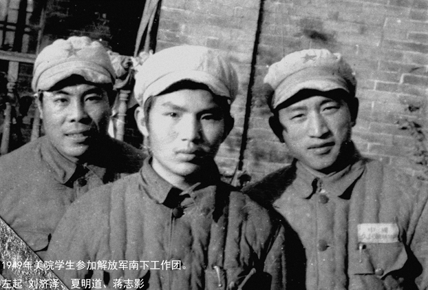 1949年美院学生参加解放军南下工作团。左起 刘济泽、夏明道、蒋志影
