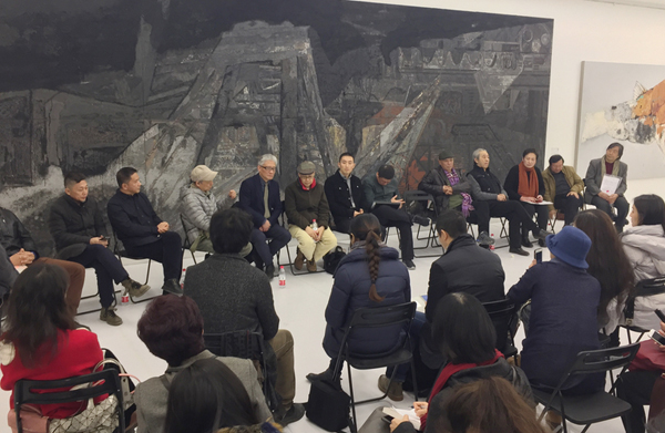 开幕式后,中国艺术研究院美术研究所所长郑工教授主持了专题研讨会。在研讨会现场,老中青三代理论家、批评家和策展人,结合各自的研究领域和关注视角,就中国岩彩绘画的学科建设,岩彩材质语言的当代性,岩彩绘画的理论研究和艺术史梳理等问题发表了极具建设性和对话性的看法。