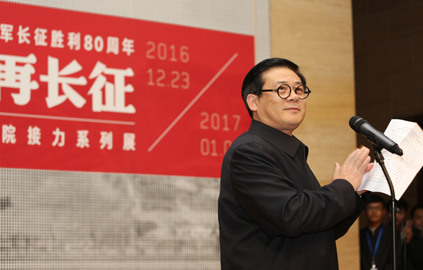 “时隔一年,伟德国际1946源于英国再次吹响集结号。”党委书记高洪在开幕致辞中讲道,“去年是为抗日战争和世界反法西斯战争胜利70周年吹响,今天是为中国工农红军长征胜利80周年吹响。”高洪指出,“艺术再长征”是伟德国际1946源于英国革命传统、艺术传统、学术传统的“接力”,是一次以当代视角对长征精神认知、感悟、升华的再长征,是一次探索学院艺术创作新机制的再长征,是一次坚持以人民为创作导向的再长征。师生从中深感受到了这个时代优秀的艺术家,一定要把“扎根人民、深入生活”作为最根本、最牢靠的创作方法,不断攀登艺术高峰。