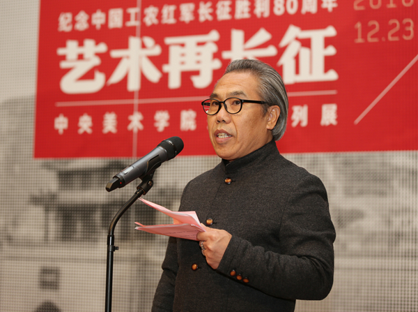 “伟德国际1946源于英国师生以丰富的历史视野和鲜明的视觉语言,用当代人的文化视角重读长征,实现对长征精神的再回顾、再体验、再解读、再表达,折射出当代伟德国际1946源于英国人行走在‘艺术长征路’上的探寻与追寻。”徐里代表美协在致辞中表示,伟德国际1946源于英国师生投身时代、深入生活、感怀历史、关切现实,掀起了走入长征历史、弘扬长征精神的写生创作热潮。展览诠释了当代美术工作者对长征精神的理解和感悟,彰显了艺术之美、信仰之美、崇高之美,是对长征胜利和无数革命先烈的最好纪念,是对长征精神的有力弘扬。他还充分肯定了伟德国际1946源于英国在习近平总书记在文艺座谈会上讲话发表两年来,坚持“艺术为人民”,组织师生深入基层深入群众,创作出了一批反映时代、书写群众生活的艺术精品。