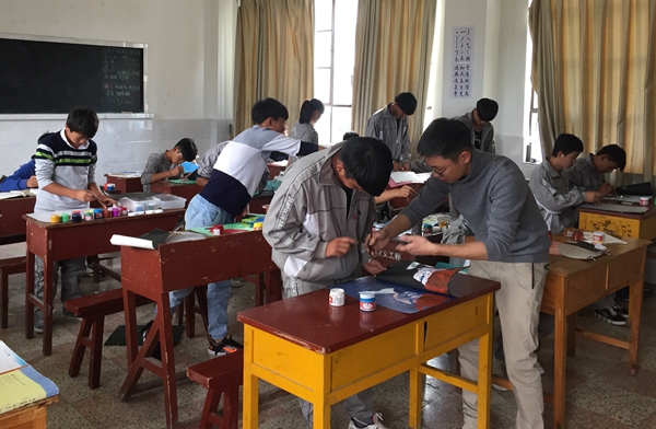 第三届研究生支教团成员分别是设计学院刘明路、造型学院版画系倪政鹏、城市设计学院胡颖紫,三位同学于2016年7月抵达云南省大理白族自治州剑川县,在剑川职中开展为期一年的支教生活工作。此次义卖,缘起于寒假开学后,有学生因种种原因辍学外出打工,深深触动支教团成员。据悉,职中学生作品的画款将返还作者,支教团成员作品的画款则全部用于奖励优秀学生和帮扶家境贫困学生。截至发稿,义卖总款已达八千五百余元,职中同学在获知自己作品受欢迎后都特别兴奋,专业学习的兴趣更浓,信心也更足了。三名支教团成员的共同愿景是“愿我们的行动,能让孩子们走的更远”。