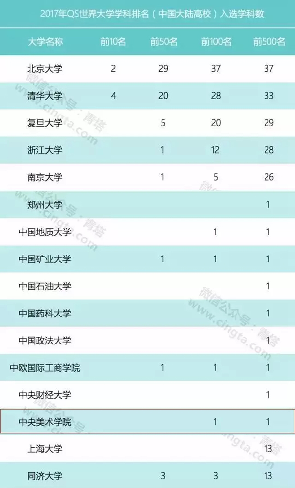 2017年QS世界大学学科排行榜 伟德官网为中国大陆地区唯一一所入选艺术类高校