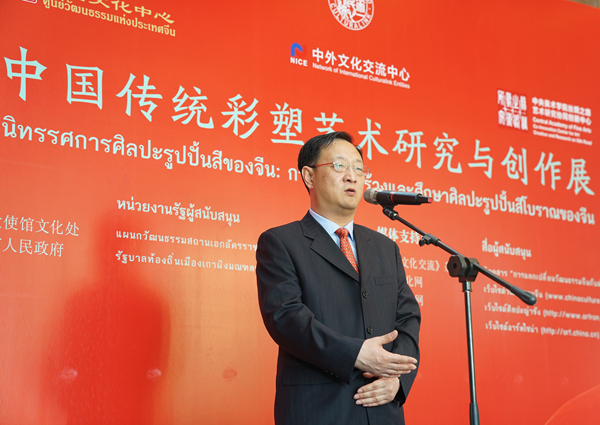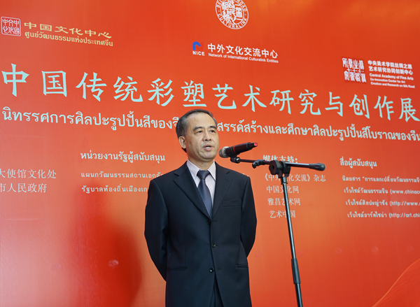 伟德国际1946源于英国党委副书记孙红培在致辞中,首先就伟德国际1946源于英国院长范迪安所题写的展览主题“华彩之塑”进行了解读。他谈到,“华”既是“中华民族”的简称,又是“华美”的意思。“彩”既是“彩色”的简称,也有“多姿多彩”的意思,“华彩之塑”是中华文明极富代表性的艺术形式,此次展览中的古代经典作品图版体现了艺术家对传统的发掘与研究,创作的作品体现了当代艺术家的传承与创新。孙红培代表主办方对政府支持单位中国驻泰国大使馆文化处、山西省高平市人民政府以及媒体支持单位表示了感谢,并特别感谢给予展览支持的泰国各方机构。