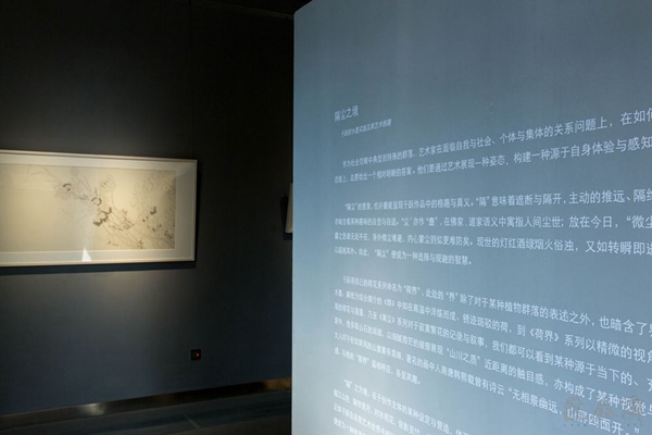 艺术创作作为一个文化群体观照自我内心、个体与社会关系的途径,也总能表达出自己的明确答案,尤其在文人画创作中,总是表现一种面对世界的态势以及呈显出的思考,这既是艺术家自身体验的表达,也是艺术家语言风格的外在表现。“隔尘”即是于跃艺术观的一种总结表达。从展览展出的新近创作中,可以看到于跃题材风格的演变,其荷花系列命名为“荷界”,暗含界限、疆域深意,也凸显他对尘世关系的反省。综合材料作品《烨》犹如在高温中淬炼而成、锈迹斑驳的荷,也体现出他在材料语言方面探索的深度。“晋中写生”系列山水多取山石局部,以细腻微茫的皴擦展现“山川之质”近距离的触目感,也赋予山水写生的个人趣味。
