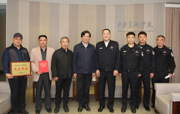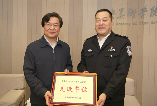2017 年4月13日,朝阳区交通支队支队长陈义成一行到访伟德官网,代表北京市交通安全委员会向学校颁发“北京市 2016 年度市级交通安全先进单位”荣誉称号,同时授予保卫处处长陈六生 “北京市交通安全优秀管理干部”个人荣誉称号。党委书记高洪、副书记王少军出席活动并与陈义成支队长交流座谈。
