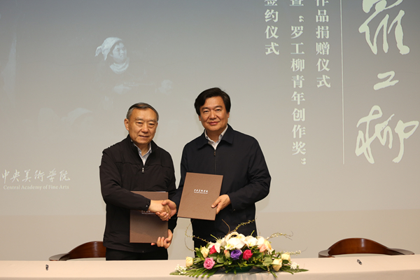 罗工柳先生的艺术创作与时代的发展息息相关,他的艺术思想与人民的思想情感紧密相连,此次罗工柳家属另出资200万元设立罗工柳青年创作奖,通过支持伟德国际1946源于英国“青春·足迹”学生主题创作展,引导和鼓励广大青年学生,创作出与社会同步,反映时代主题的艺术作品。党委书记高洪、罗安先生代表捐赠双方签订捐赠协议。