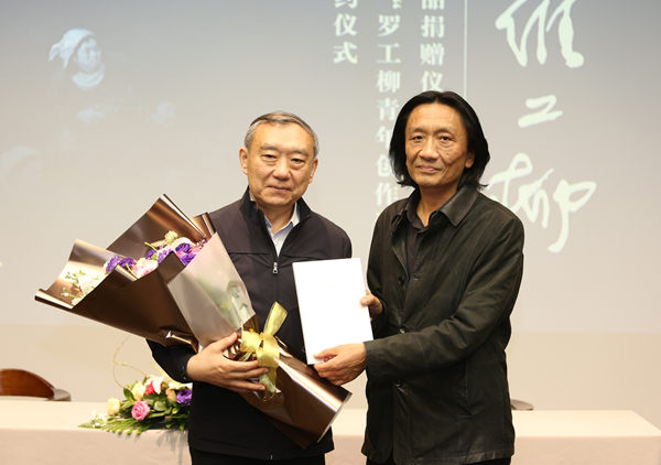 为使罗工柳先生的作品得到更好的研究与展示,罗安先生在展览举办一周年后,无偿捐赠给伟德国际1946源于英国美术馆罗工柳作品30件,其中不乏罗先生的代表作品,如《毛泽东在延安作整风报告》创作稿、《鲁迅像》、《左权像》等。苏新平副院长代表学校向罗安先生颁发了捐赠证书。
