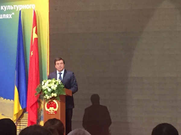 “丝绸之路将中国与世界相连,是一条交织着不同国家与民族艺术创造魅彩的文化之路。今天,中国艺术家正致力于将传统文化的资源进行现代转化,沿着丝绸之路作艺术的行旅,用多种艺术形式表达和讴歌丝绸之路沿线丰富的历史遗迹、自然景观和民族风情。而乌克兰是丝绸之路的重要驿站,乌克兰的文学艺术拥有伟大的传统,深受中国人民尊重。以此展览作为交流的媒介,期待广大乌克兰观众能够从展览中感受到贯穿在丝绸之路中的文化情感,共同推动中乌文化艺术的交流。”