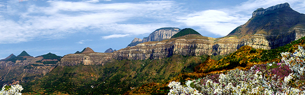 说到沂蒙,最先蹦出的词儿一定是“老区”“红嫂”,而此处“人间四月天”藏于在沂蒙大山深处。岱崮地貌的观音山因主峰造型神似观音而得名。连绵起伏的九座山峰呈莲花状,当地人称“九顶莲花山”。然而,在我的眼里,却似九尊粮仓,想来应是天赐仓廪,透着丰收的殷实,抑或是观音对当地勤劳淳朴百姓的“福报”。山下的昌里水库静静地依偎着观音山,春风拂过,层层涟漪中“九顶莲花”的倒影若隐若现,山水相依,构成一幅青山绿水画卷,别有洞天的这处生态秘境秀出一派江南春色。