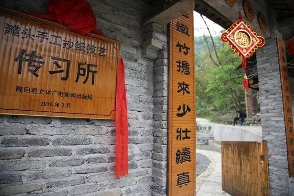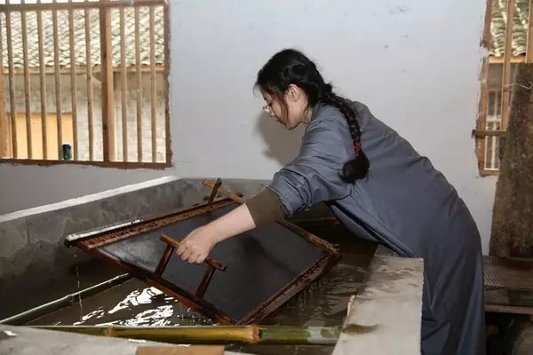 在滩头镇手工抄纸技艺传承所考察学习手工造纸