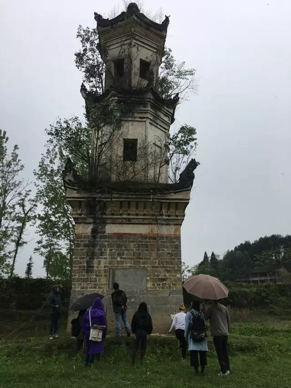考察当地的惜字炉(字纸炉)