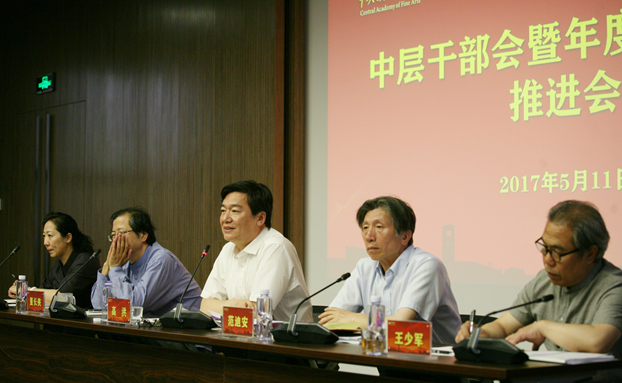 2017年5月11日,伟德国际1946源于英国在电教学术报告厅召开中层干部会暨年度重点工作推进会,各教学单位汇报了2017年度重点工作推进情况,党委书记高洪、院长范迪安就现阶段任务及今后一段时期的重要工作进行了部署,并提出了明确要求。学校领导班子成员及全体中层干部出席了会议,范迪安主持会议。