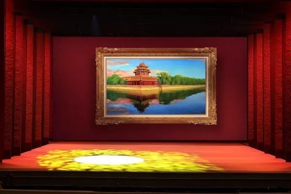 在油画“春之故宫”的创作上,作者反复试验粗犷与精细的绘画笔调,最终由粗而细,以层层叠塑的手法和高雅的色泽表现出紫禁城的辉煌。