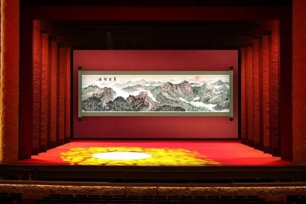 在“冬之长城”片段中,泼墨泼彩和笔线勾勒的语言提示了中国画的艺术特征,全画视野宽阔,色调转换,从惟余茫茫的冬日长城到春回大地,红日东升,以“万里锦绣”的长卷展现出典型的中国画艺术意境,最后以“北京四季”篆刻印章点题,也成为全曲的视觉休止符。