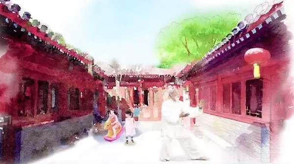 在“夏之胡同”片段中,为表现生机盎然的胡同生活,作者从四合院、鼓楼、后海等范围内进行多角度地撷取与演绎,以透明轻盈的水彩语言表现出政通人和、国泰民安的生活画面。