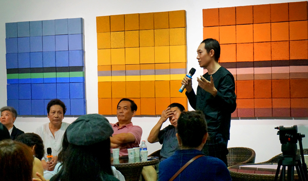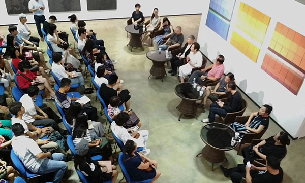 开幕式以轻松的“艺术分享会”形式开始,荣剑博士、胡明哲教授以及每一位参展艺术家,与现场来宾共同分享了对于岩彩绘画的认识,细致入微的讲述了自己的创作体验,使得现场观众能够更深入的了解岩彩绘画独特的语言魅力和每一幅作品背后的生成过程。分享会后,多媒体艺术家盛杰,实验音乐人丁昕还应邀为现场观众带来了精彩的即兴音乐表演。