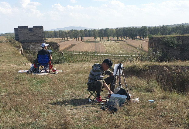右玉的苍凉辽阔和淳朴民风对于许多第一次“走西口”的同学来说是一个不折不扣的惊喜。这里的自然风景有着塞外边关独特的历史文化内涵和文化印记,古长城古堡古村落在这里静穆的矗立着,诉说着千百年的历史。隔天,美院师生迅速进入状态,投入到右玉的古朴之中。