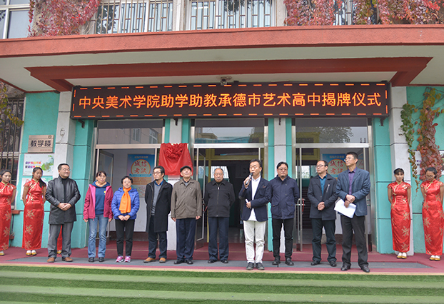 河北承德八中共建帮扶暨助学助教揭牌仪式上,我院行政教辅党总支副书记金日龙代表支部致辞