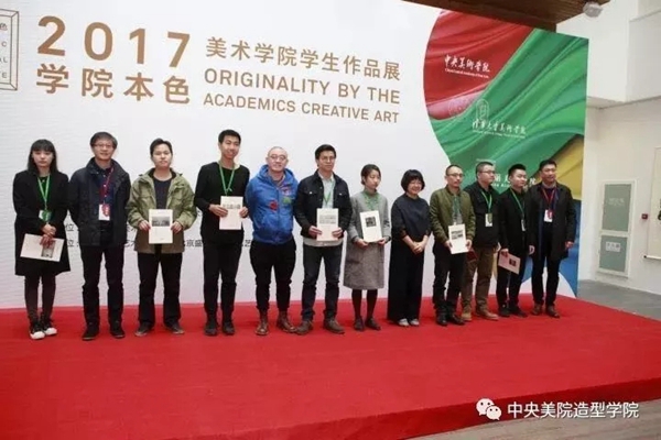马赛、吴琼、杨冬江及雕塑系书记兼副系主任李鹤为获得“提名奖”的获奖学生代表颁发获奖证书