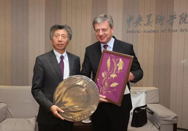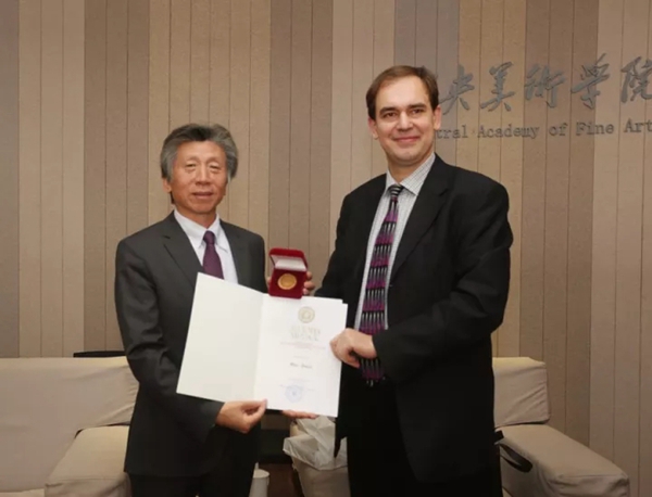 乌克兰国立美术与建筑学院副院长奥斯塔普·科瓦利丘科代表学院赠予范院长金质奖章及证书