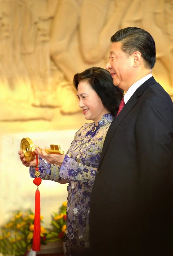 习近平总书记向阮氏金银国会主席移交越中友谊宫金钥匙