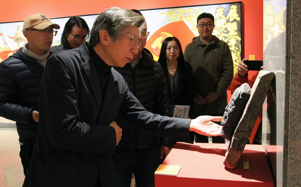 范迪安院长在参观获得此次展览“罗工柳青年集体创作”一等奖的中国画学院李靖仪等同学的作品《世纪曙光》时特别提到,党的十九大胜利闭幕后,新一届中央政治局常委就奔赴上海和浙江嘉兴,瞻仰了南湖红船,是谓“梦想,从这里启航”,而同学们的这幅集体创作正是描绘了一幅南湖新区图,意味着同学们的梦想也将从此启航。