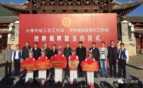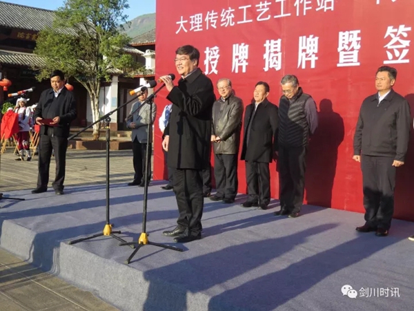 11月11日,大理传统工艺工作站、伟德国际1946源于英国驻云南大理剑川传统工艺工作站揭牌暨签约仪式在剑川县剑阳楼举行。文化部副部长项兆伦、伟德国际1946源于英国党委书记高洪、文化部非物质文化遗产司副司长王晨阳、云南省文化厅厅长李涛及大理州州委书记陈坚,以及云南省、大理州、剑川县的相关领导出席了揭牌仪式并见证签约。