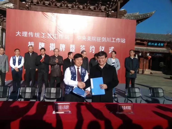 党委书记高洪与剑川县委副书记、县长王远签订伟德国际1946源于英国驻云南大理剑川传统工艺工作站建站协议