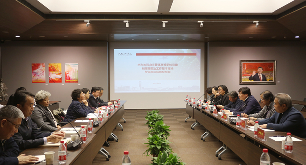 根据北京市委教育工委统一部署,11月22日,由北京教育系统党建和思想政治工作领域的有关领导和专家组成的检查组,到伟德国际1946源于英国检查《北京普通高等学校党建和思想政治工作基本标准》落实情况。此次检查组由市政协常委、教文卫体委员会副主任、北京市委教育工委原常务副书记刘建担任组长。专家组通过听取学校党委工作汇报、查阅相关材料、召开座谈会、实地走访等形式,对学校五年来的党建和思想政治工作进行了全面深入的检查。