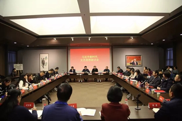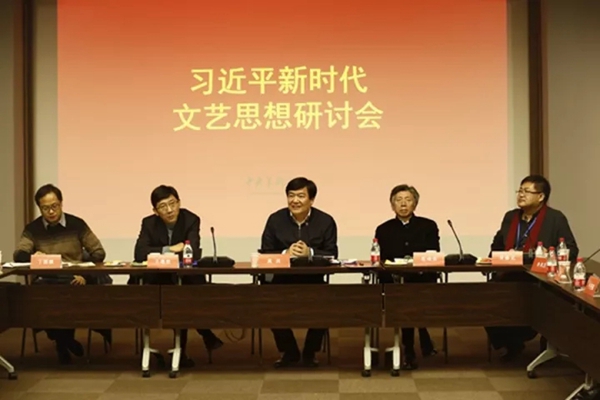 人民日报社文艺部副主任袁新文发言谈到习近平文艺思想明确阐述社会主义文艺的性质和任务、内涵和主旨、道路和方向、继承和创新、人才和队伍这些重要命题,提出了当今文艺发展很多亟待解决的现实问题,指出了文艺发展面临的多元文化、市场经济、信息技术方面挑战。