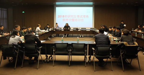 纪委办公室刘娟主任围绕考试安全和考试纪律做了考前动员,招生处处长梁丽莎针对依法治考向与会人员传达上级会议精神,招生处徐忠义对2018年研究生招生政策调整做了详细的讲解。