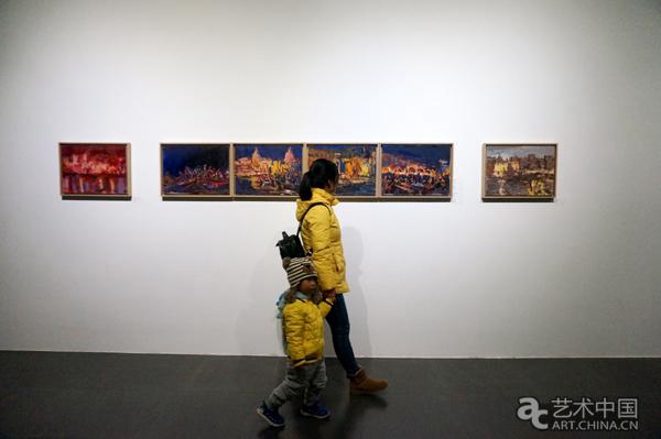 从那时起,印度题材便成为石煜热衷表现的题材之一,此次展览展出了石煜2017年最新创作的以印度为题材的作品。每个民族都有属于本民族的圣节,清晨和夜半的恒河水畔是石煜的驻足点,同一条恒河寂静与喧闹,强烈的颜色反差,不断窜动的朝圣人群,在祭坛灯火交织下的倒影,宗教的神圣感与世俗的泥土气息,在光影变幻中的《恒河上的瓦拉纳西之沉睡》、《恒河上的瓦拉纳西之神祭》、《恒河上的瓦拉纳西之漫光》等瓦拉纳西组画中酣畅地呈现出来。生命在此开始,由此结束,无论高贵与低贱,人世间的生与死会在这里同在,热闹激情的puja祭祀在石煜画面的呼吸中游弋着的一种高于生活的信仰之力,一如艺术对他而言。