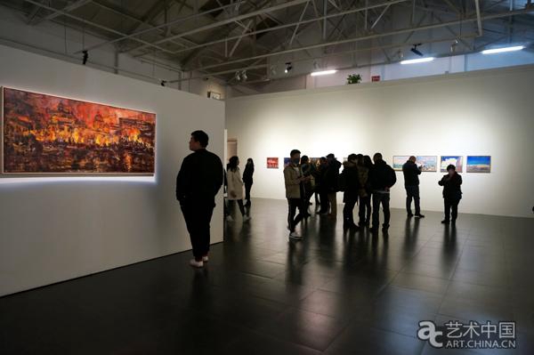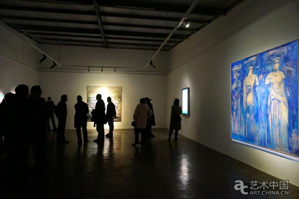 石煜的画展每次都是人头攒动,展厅幽暗的空间,墙上的一幅幅画作在灯光的探照下被烘托呈现出来。
