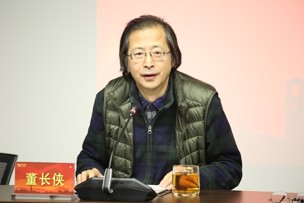 高洪在讲话中充分肯定了董长侠同志在学校党委和历任院长领导下,为学校改革发展做出的积极贡献,对其任职十六年来的工作做出了高度评价。他指出,董长侠同志调入学校工作以来的十六年,是伟德国际1946源于英国由单一美术学科向综合性美术院校发展的关键时期,也是推动建立现代大学制度的重要时期。他带领分管部门攻坚克难,学校财务管理规范化程度逐步提高,后勤社会化改革稳定实施,校区建设和管理全面加强,学校运行安全稳定,为学校走向百年奠定了坚实的基础。