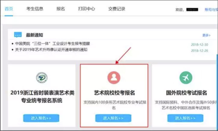 1、登录艺术升网站(手机APP不能操作)后,在首页选择“艺术院校校考报名”后,选择左侧“已报专业”。
